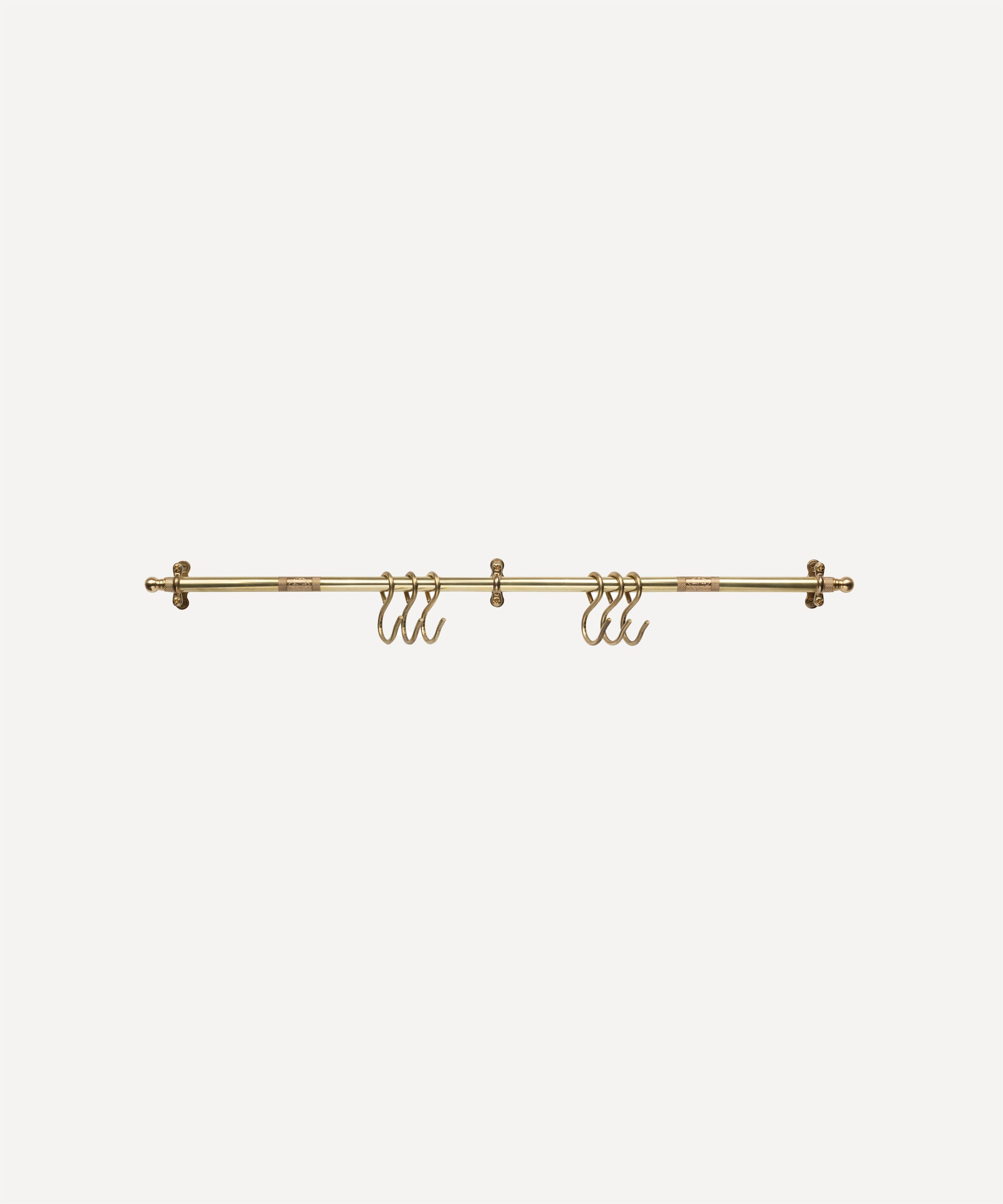 Our NEW 68cm Long Brass rail with 6 brass hooks. A Brand New Size made with three brass tubes joined with 2 of our beautiful Gloag and Daughter engraved Brass joiners!  It's a stunner!